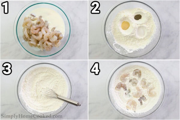 - Don’t dredge all the shrimp at once. It will turn into a big clumpy mess. So, don’t do any more than 10 shrimp at a time.