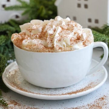 This Starbucks copycat Eggnog Latte recipe is so delicious, and perfect this time of year. Enjoy it with cookies, cakes, small bites, and snacks.