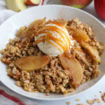 Allow the crisp too cool- Letting the apple crisp cool before cutting and serving helps it hold its shape as it can be almost liquidy when hot from the oven.