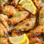 Once the wings are baked, brush the lemon pepper butter over the wings with a silicone brush or toss the sauce and the wings together in a large bowl. Serve warm and enjoy!