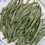 Add Parmesan (optional): Sprinkle the hot green beans with Parmesan right when they come out of the oven. Taste and adjust seasoning, then serve warm.
